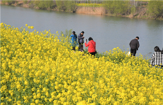 花香蝶自來。每到周末,許多游客就會(huì)來到這里,徜徉在美麗的花海中,呼吸著新鮮的空氣,遠(yuǎn)眺緩緩東去的碧水,共賞一場(chǎng)美麗的花事,盡享幸福生活。許多俊男靚女用他們善于發(fā)現(xiàn)美的慧眼,紛紛進(jìn)行自拍,將這份極致的美景定格在自己的相機(jī)鏡頭里。
