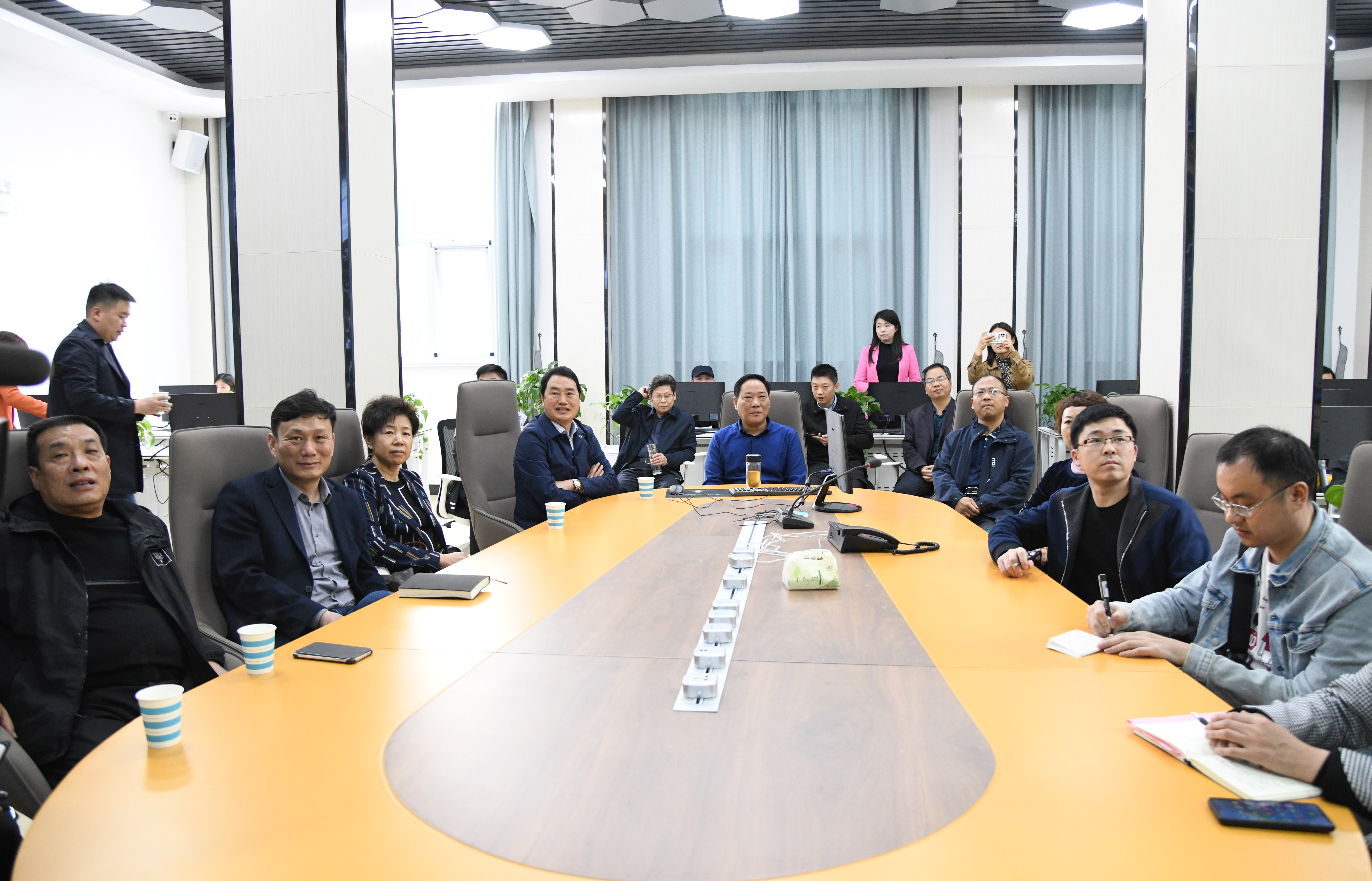 4月16日下午,開(kāi)封日?qǐng)?bào)報(bào)業(yè)集團(tuán)黨委書(shū)記、社長(zhǎng)、董事長(zhǎng)劉會(huì)敏一行13人,來(lái)到周口報(bào)業(yè)傳媒集團(tuán)進(jìn)行報(bào)業(yè)經(jīng)營(yíng)、媒體融合和人事管理等方面的交流。記者孫安平攝 ②9