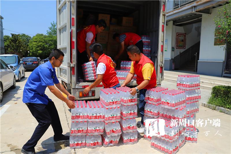 當(dāng)天中午,掛著印有“昨天大家助我脫貧,今天我為救災(zāi)出力!”條幅的防汛救災(zāi)物資運輸車抵達周口港區(qū)?!耙皇乔皟商旆烙_風(fēng)‘煙花’,我們早就來了。”隆古村黨支部書記段長春一下車就連忙慰問眾人。一同前往的還有6位年輕力壯的志愿者,他們不辭勞苦,和港區(qū)消防、城管人員一起頂著烈日,用了半個多小時將滿車物資搬運到位。
