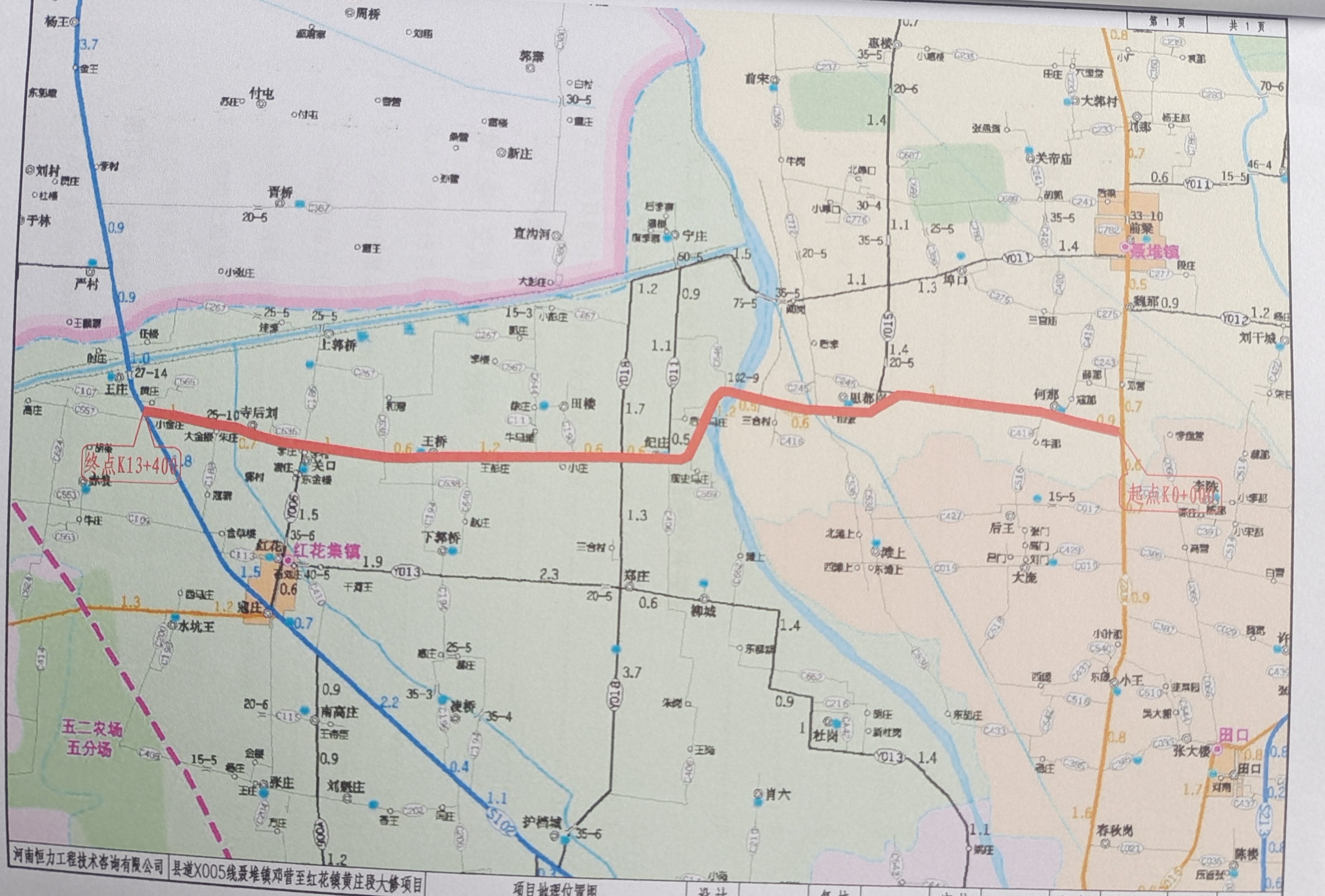 西華縣道X024線艾崗大街至候橋段改建項(xiàng)目,起點(diǎn)位于艾崗鄉(xiāng)大街,線路總體呈南北走向,向北經(jīng)凌莊至李毛莊西交叉口折向西,經(jīng)過蘇莊至候橋橋東頭與河堤路交叉口北50米結(jié)束,建設(shè)里程為4.33公里,設(shè)計(jì)速度20km/h,路面寬度為5米/6.5米/7米,項(xiàng)目預(yù)計(jì)總投資918.22萬元。