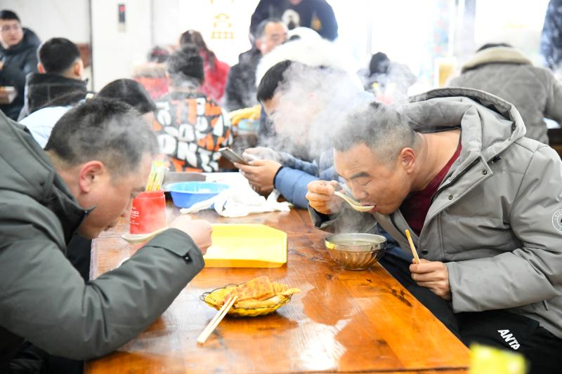 在老佟家胡辣湯店,趕在新年即將到來時喝湯的老百姓