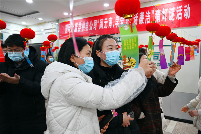 2月15日,為慶祝元宵佳節(jié),太康縣供電公司舉行“鬧元宵、學(xué)黨史、話(huà)廉潔”猜燈謎活動(dòng)。燈謎不僅涵蓋黨紀(jì)法規(guī)、黨史知識(shí),還將廉潔文化融入其中,既有趣味性,又有知識(shí)性,活躍了節(jié)日氣氛。