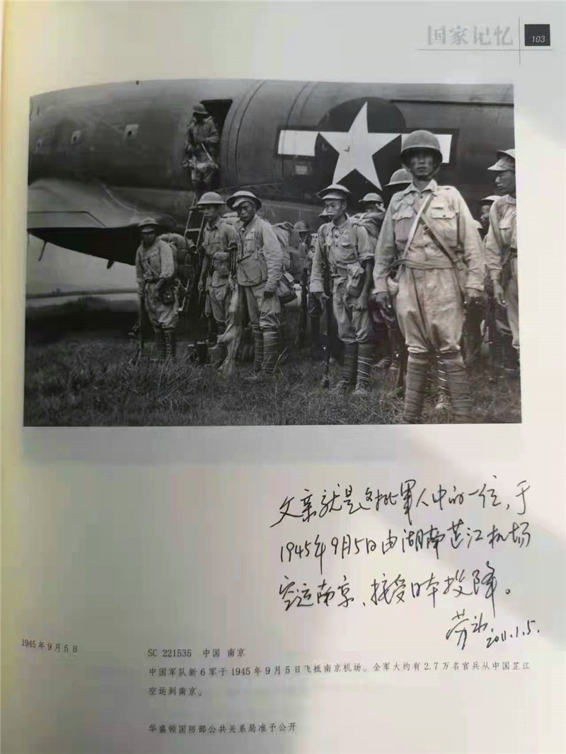 1945年3月,父親隨干訓(xùn)團(tuán)空運(yùn)回國,駐扎云南曲靖,繼續(xù)訓(xùn)練、待命。1945年8月15日,日本投降。干訓(xùn)團(tuán)全體官兵乘汽車到達(dá)湖南芷江機(jī)場(插圖5),再空運(yùn)到南京,參加南京日本受降儀式(插圖6) 。