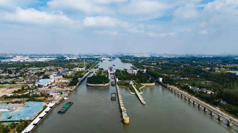 9月27日上午,“豫貨出海、周向世界”采訪組B組來到位于揚州市長江北岸的施橋船閘。古鎮(zhèn)施橋,長江與大運河在這里交匯,施橋船閘就位于這個交匯點上。