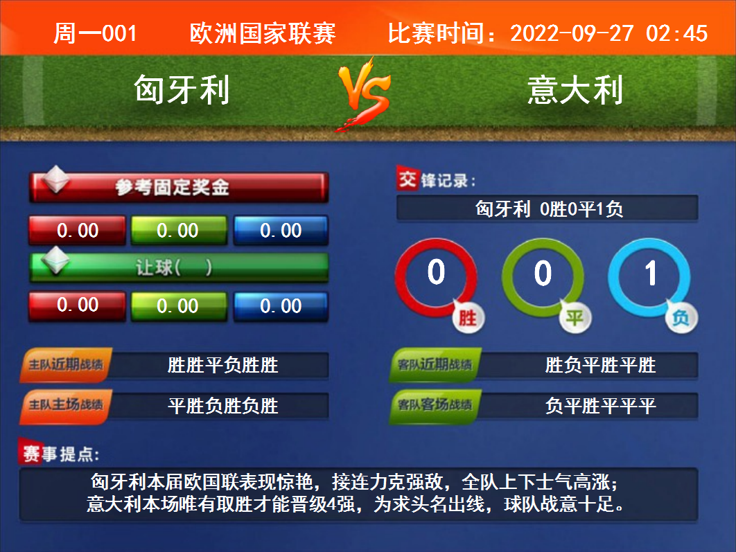 周一001 歐洲國(guó)家聯(lián)賽 匈牙利VS意大利