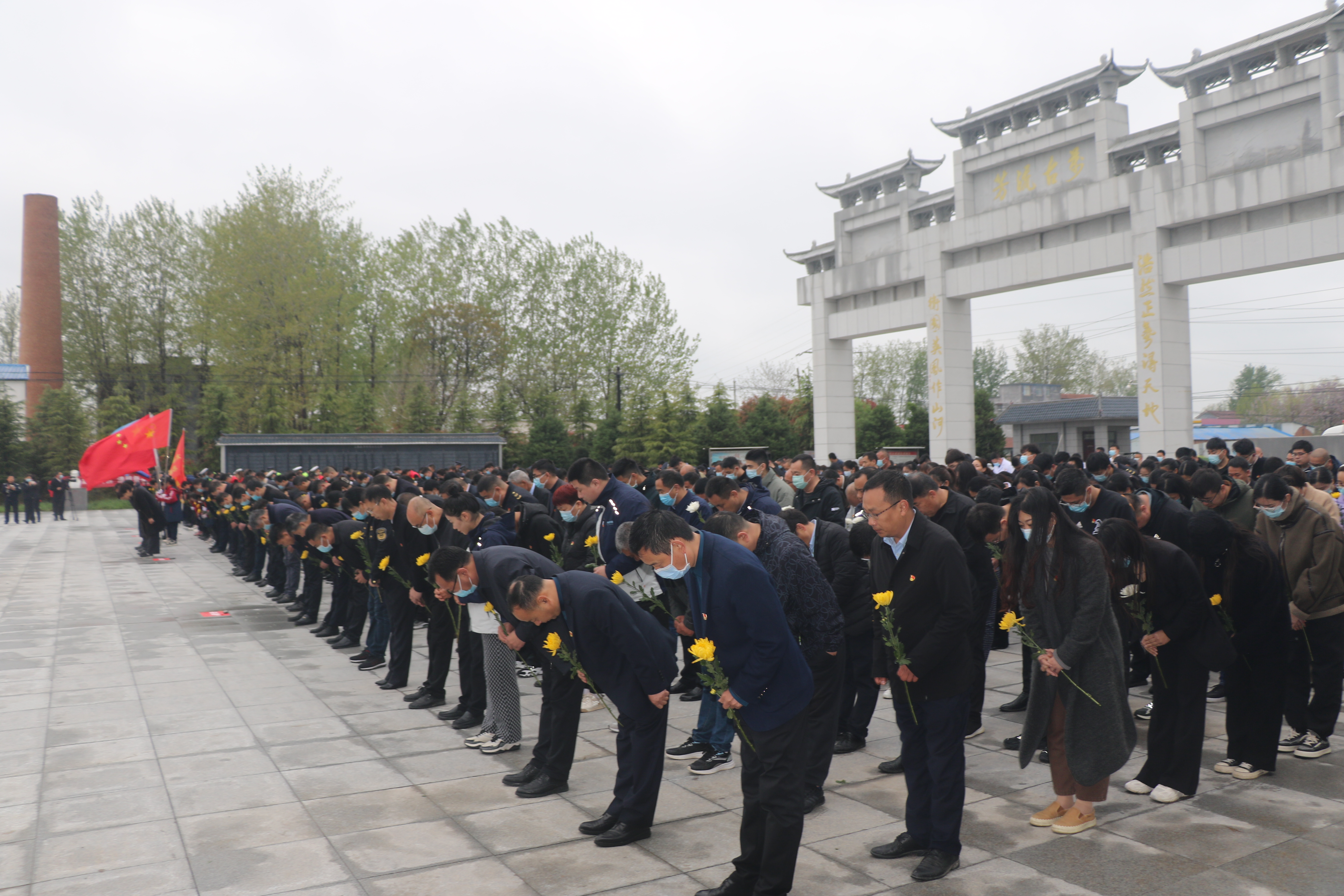 隨后,大家依次瞻仰烈士紀念碑,并向烈士紀念碑敬獻了鮮花,表達了對烈士的崇高敬意。