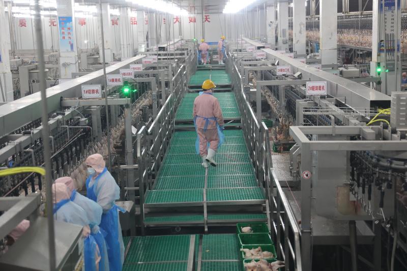 西華雙匯宰雞廠位于西華縣中都路與華安路交叉口東北角,2020年8月份開始施工建設(shè),2022年1月份建成投產(chǎn)。宰雞項(xiàng)目設(shè)計(jì)年屠宰肉雞1億只,雙班雙線生產(chǎn),車速2.5萬只/小時(shí),日宰35萬只,規(guī)劃產(chǎn)品有冰鮮白條雞、雞胸肉、雞腿肉、琵琶腿、雞翅中、雞翅根、雞爪等152個(gè)品種規(guī)格,日產(chǎn)出雞產(chǎn)品875噸,其中鮮品555噸,凍品220噸,地銷、化制和煉油產(chǎn)品100噸,年產(chǎn)出雞產(chǎn)品25萬噸。屠宰的各個(gè)環(huán)節(jié)做到全程監(jiān)控,建立起“三級(jí)生物安全防控措施”,形成從檢測到屠宰等嚴(yán)格過程的控制體系,使屠宰各環(huán)節(jié)不受到污染,實(shí)現(xiàn)高度清潔的全產(chǎn)業(yè)鏈健康屠宰。產(chǎn)品從分割、包裝、入庫到配送、市場銷售整個(gè)過程嚴(yán)格在0-4℃環(huán)境中進(jìn)行,保證雞肉新鮮。