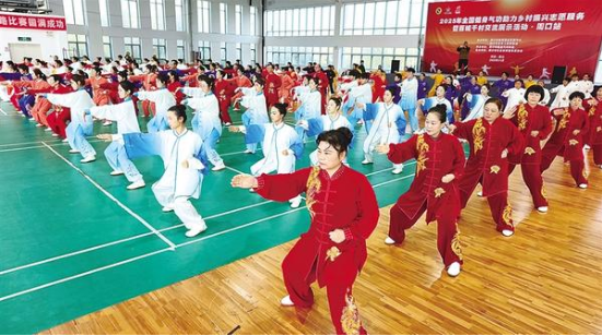 參賽隊員在比賽中。近日,2025年全國健身氣功助力鄉(xiāng)村振興志愿者服務暨百城千村展演交流展示活動·周口站在周口市體育中心老年館拉開帷幕,來自我市健身氣功協(xié)會24個站點的代表隊及周口高校的5支大學生參賽隊共200余人齊聚一堂,在五禽戲、八段錦、大舞、導引養(yǎng)生功十二法四大項目40個小項中展開精彩角逐。