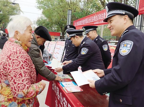 民警向群眾發(fā)放宣傳資料。2024年12月1日~12月7日是第七個“憲法宣傳周”。為大力弘揚憲法精神,營造崇尚憲法、學(xué)習(xí)憲法、宣傳憲法、遵守憲法、維護憲法的濃厚氛圍,連日來,扶溝縣公安局積極組織民警到大程文化廣場開展集中宣傳活動。