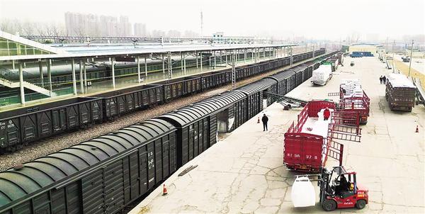 2月22日上午,漯阜鐵路周口站貨場(chǎng)一片繁忙,滿載農(nóng)資的火車到站卸貨,有力保障了我市農(nóng)業(yè)生產(chǎn)的物資需求。